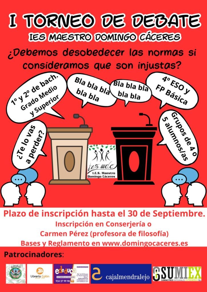 Próximamente tendrá lugar la primera edición del torneo de debate del Centro . Aqu´os dejamos las bases reguladoras. Más información